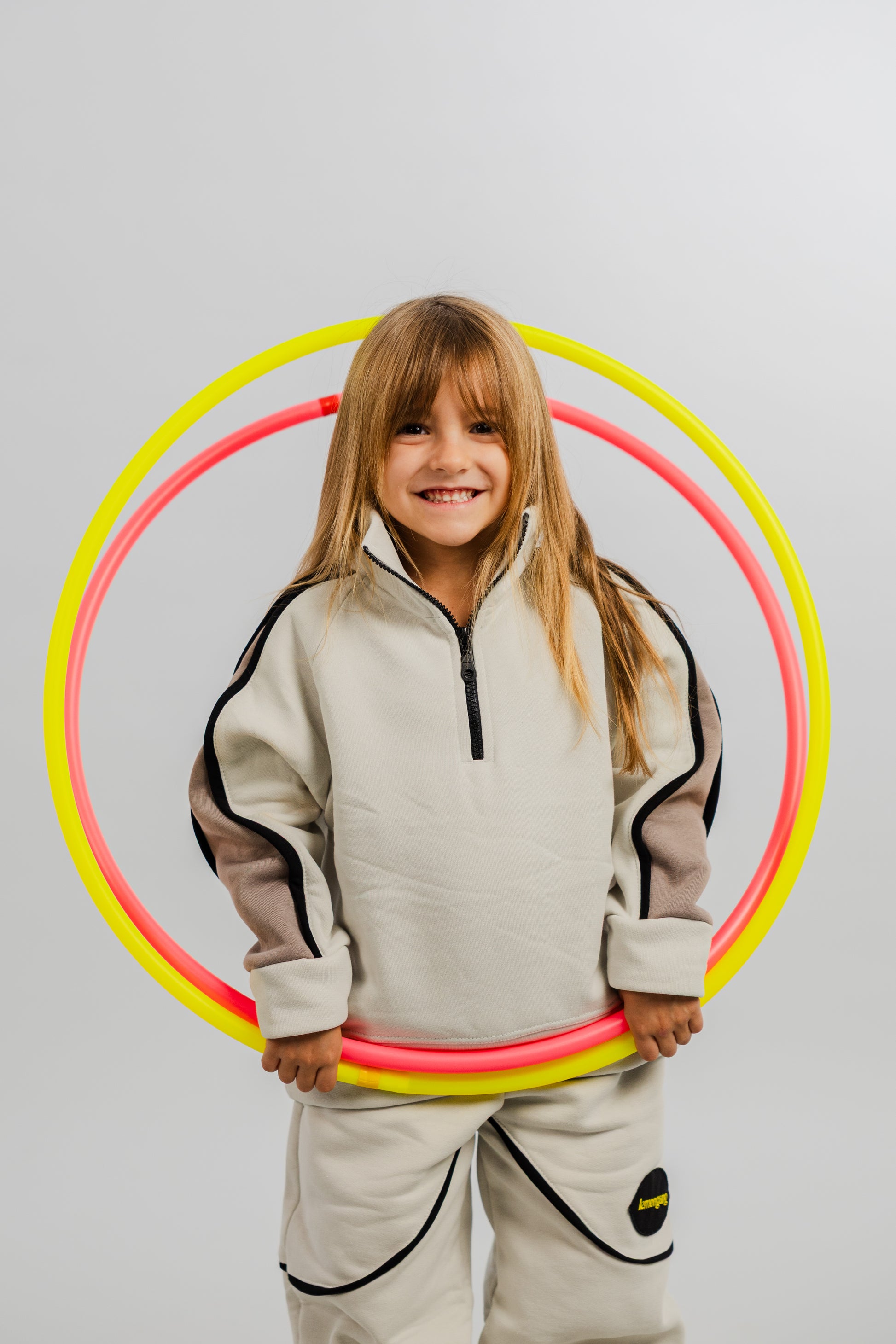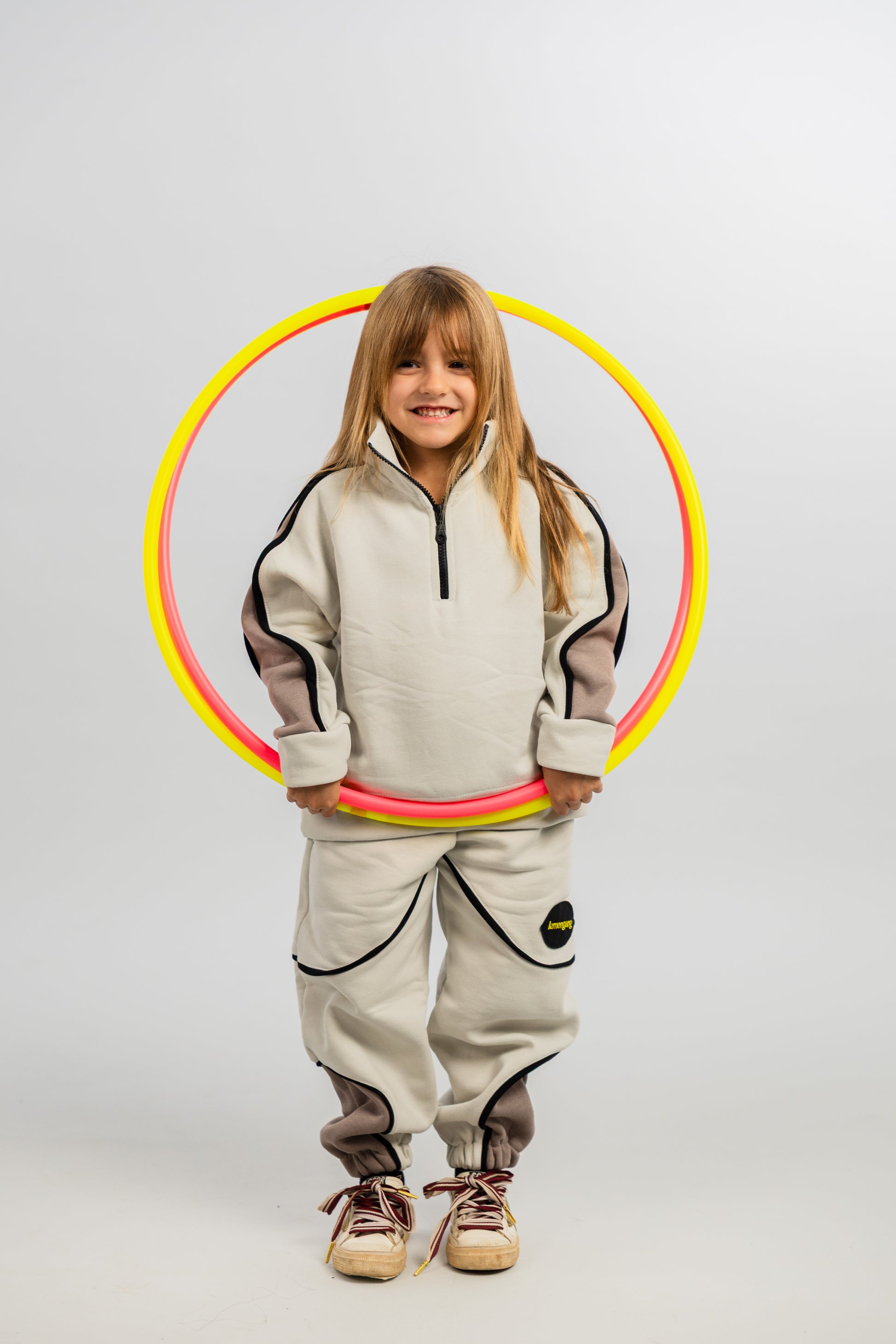 Crafted from heavyweight cotton-blend fleece, the Bonaire Set features a relaxed half-zip sweatshirt with sleek contrast panels along the sleeves, paired with matching joggers that deliver both structure and freedom. The tonal “kmngrce” logo detail adds a subtle nod to contemporary design.