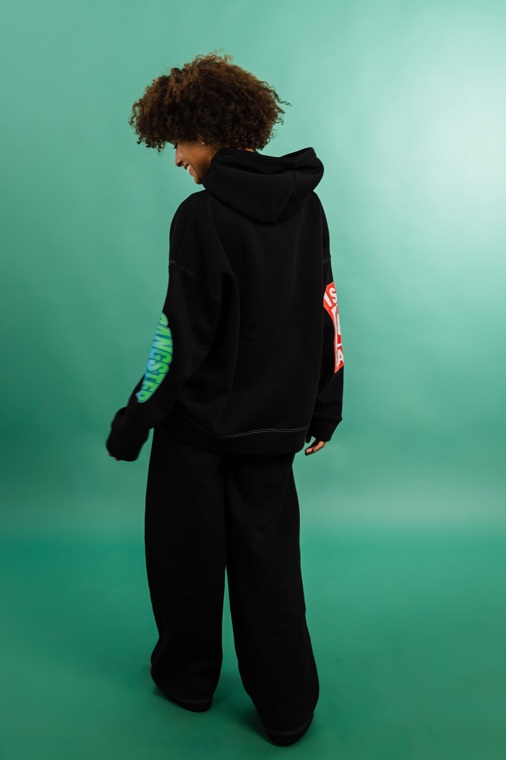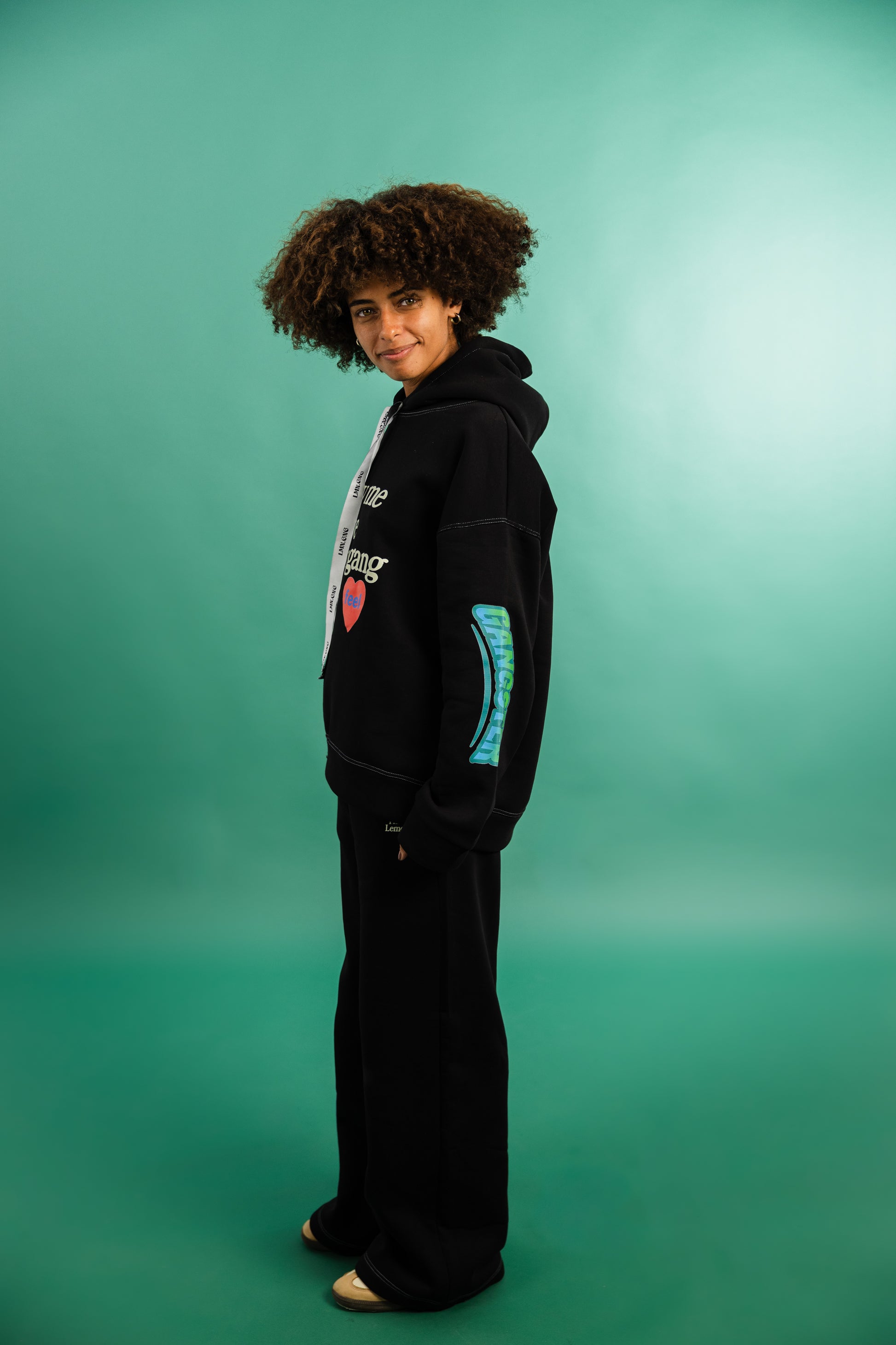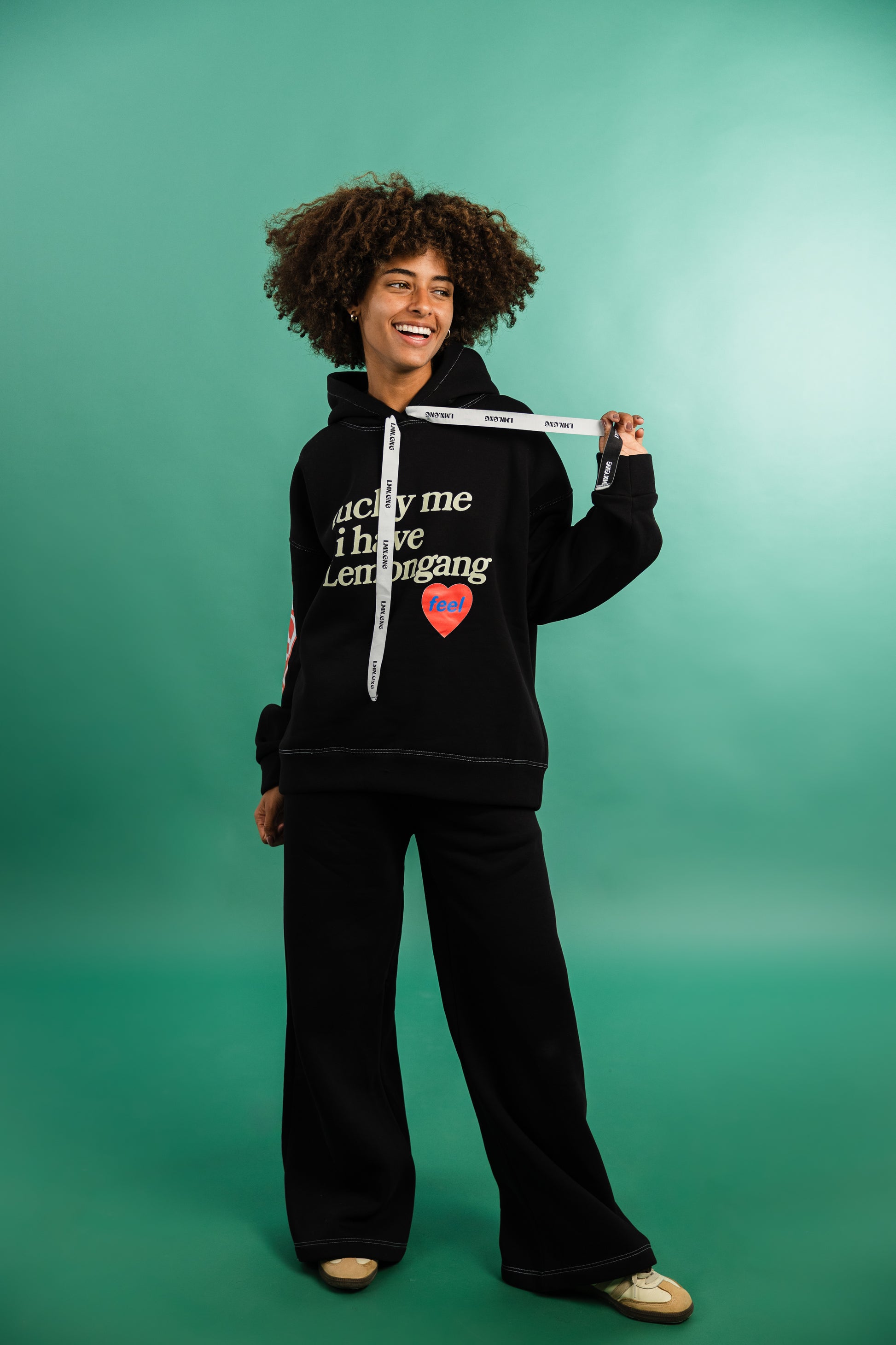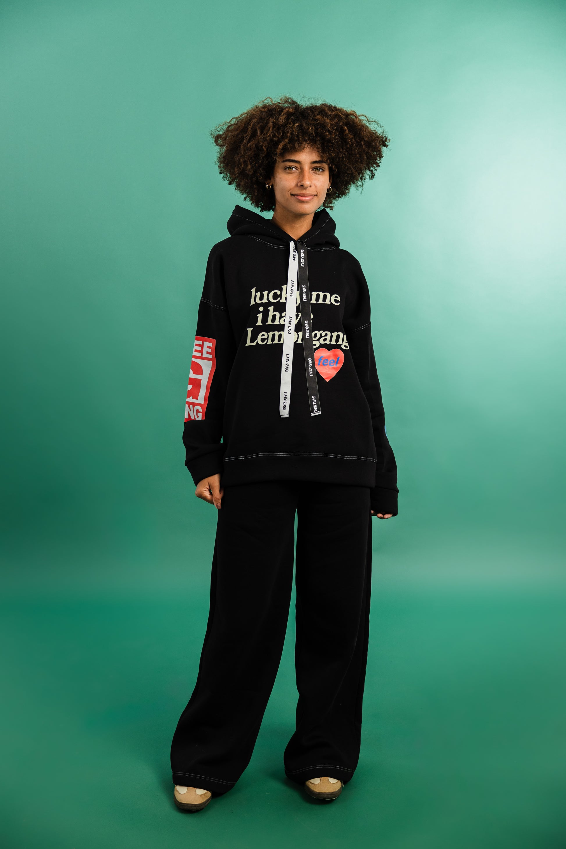 Lemongang's Classic Black hoodie and jogger set with an oversized fit, crafted from a heavy weight jersey cotton. Super soft, pre-shrunk and piece dyed for the ultimate jersey. 'Lemongang ' fully style printed to the chest and on the hands.