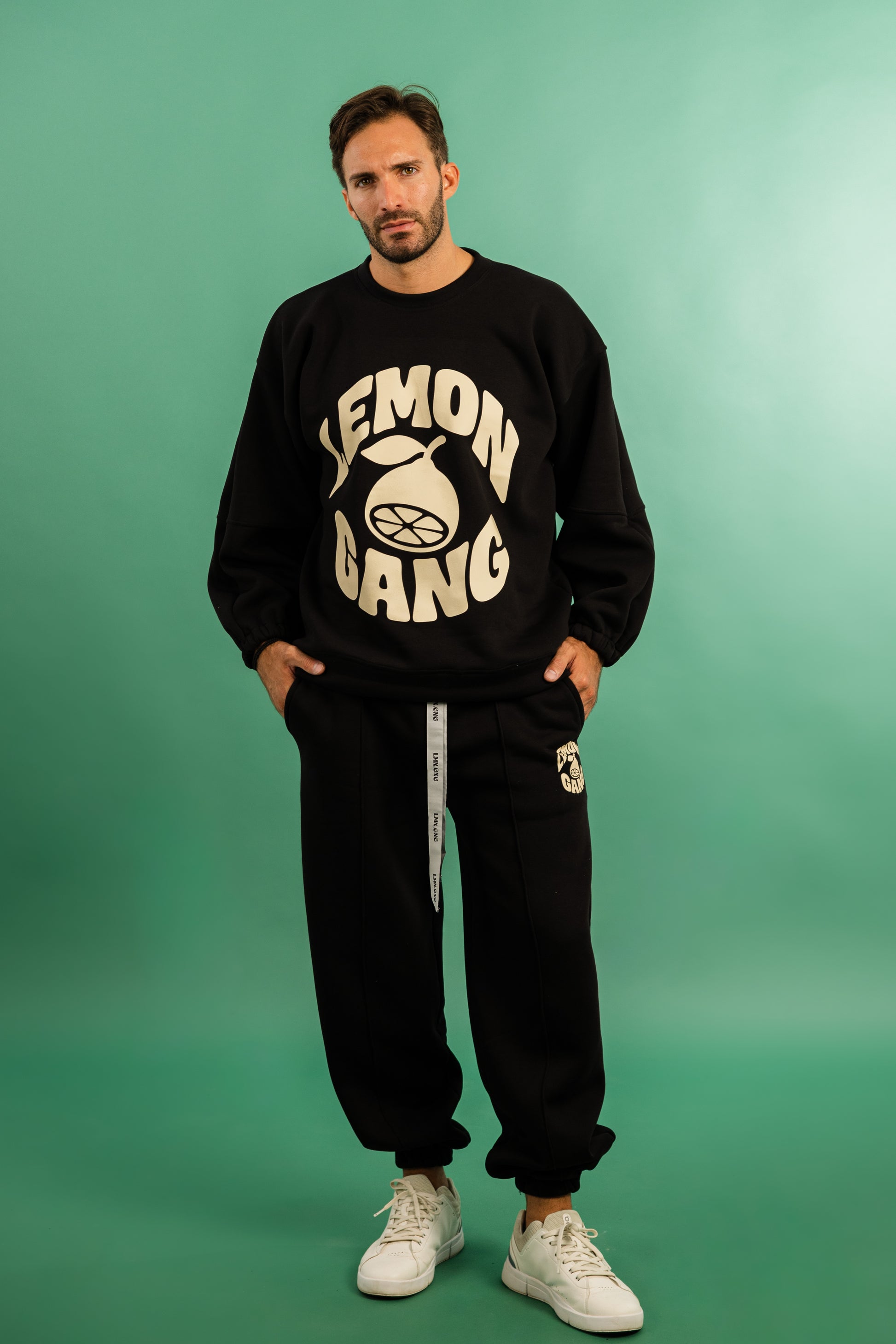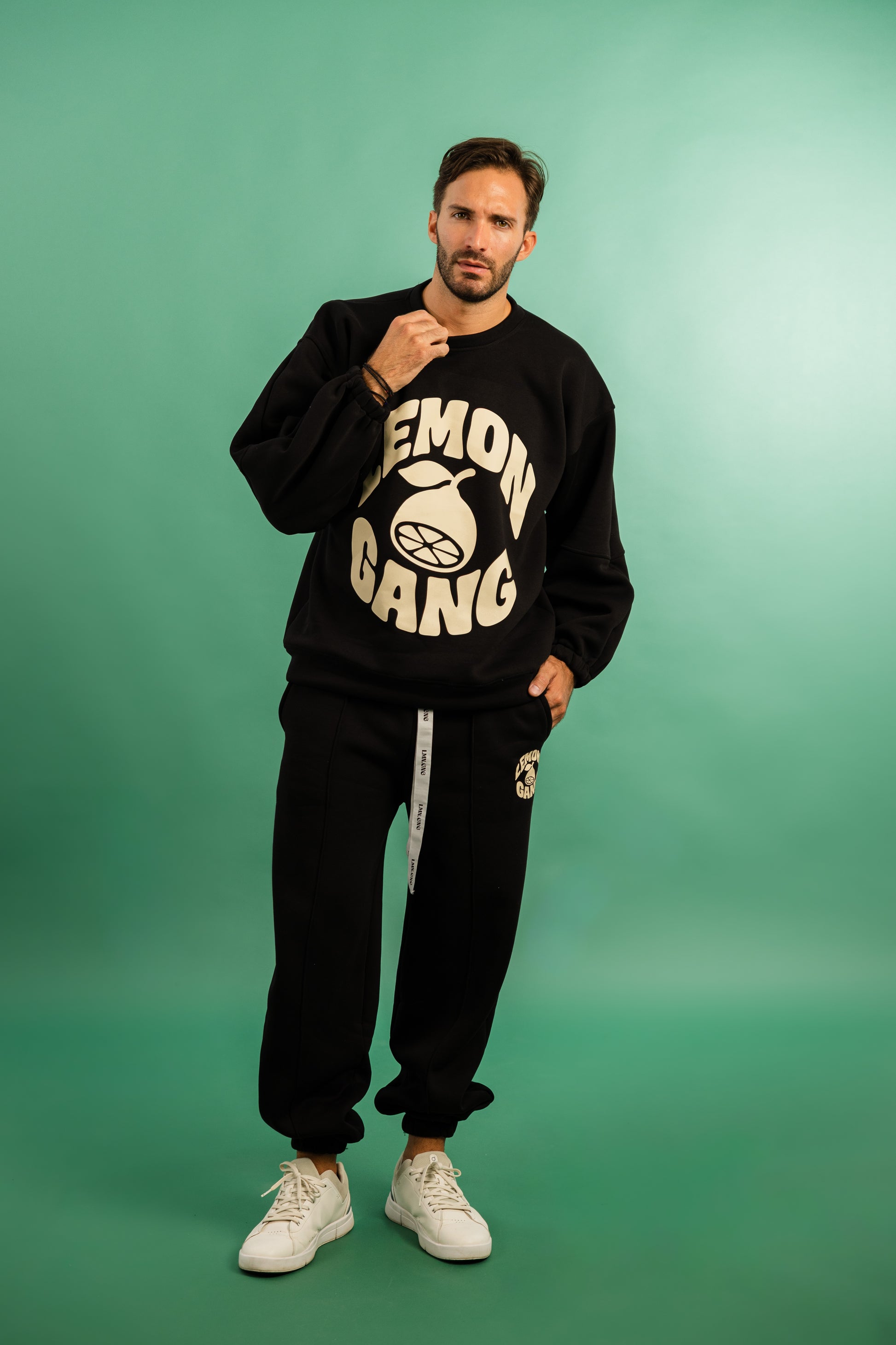 Lemongang's Classic Tracksuit without hoodie and Jogger trousers set with an oversized fit, crafted from a heavy weight jersey cotton. Super soft, pre-shrunk and piece dyed for the ultimate jersey. 'Lemongang' Style printed to the chest.