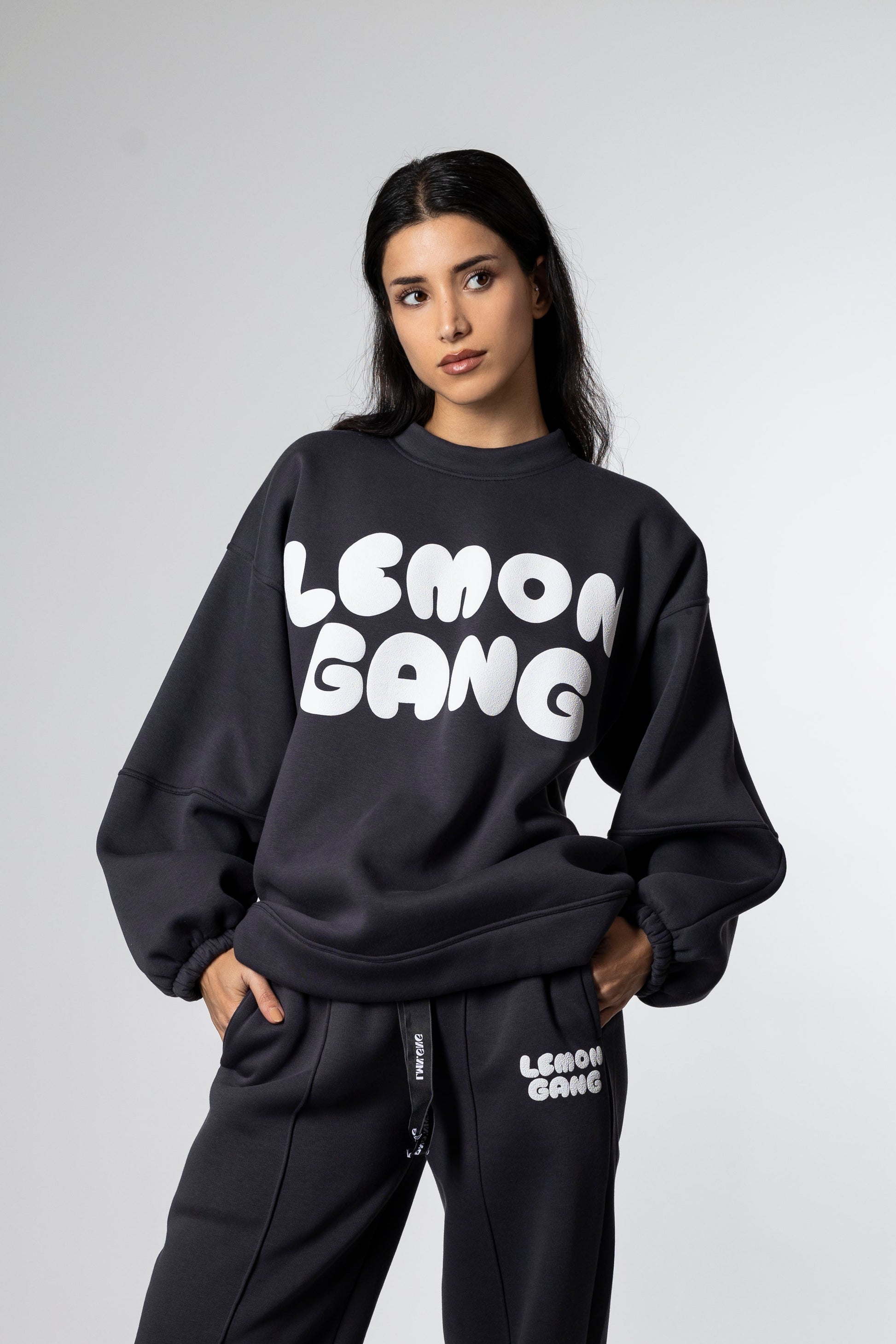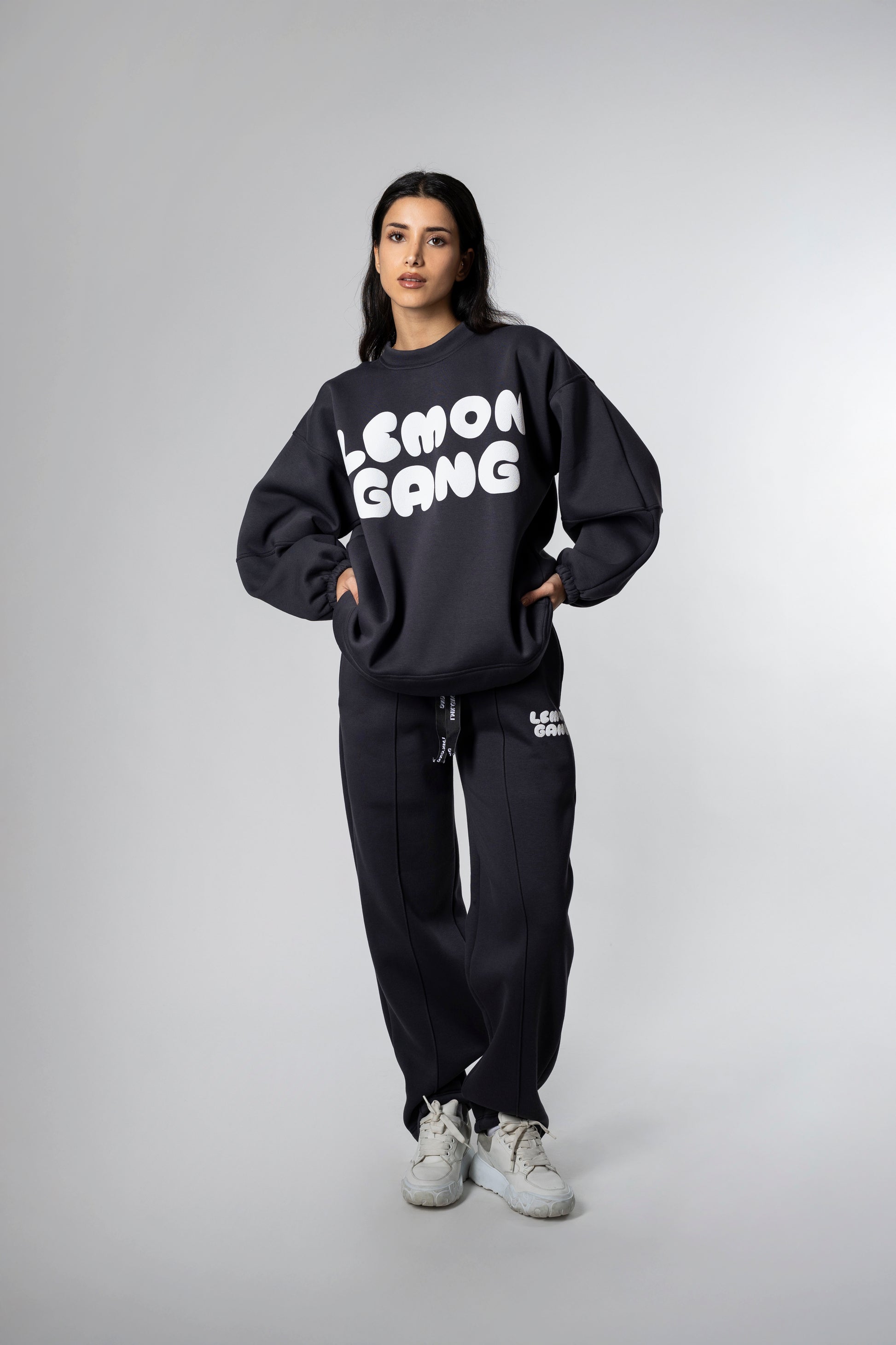 Lemongang's Classic Tracksuit without hoodie and straight trousers set with an oversized fit, crafted from a heavy weight jersey cotton. Super soft, pre-shrunk and piece dyed for the ultimate jersey. 'Lemongang ' Puffy Style printed to the chest.